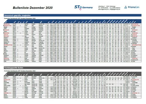 Dezember ZWS - Neue Holstein Bullenliste mit Preisen