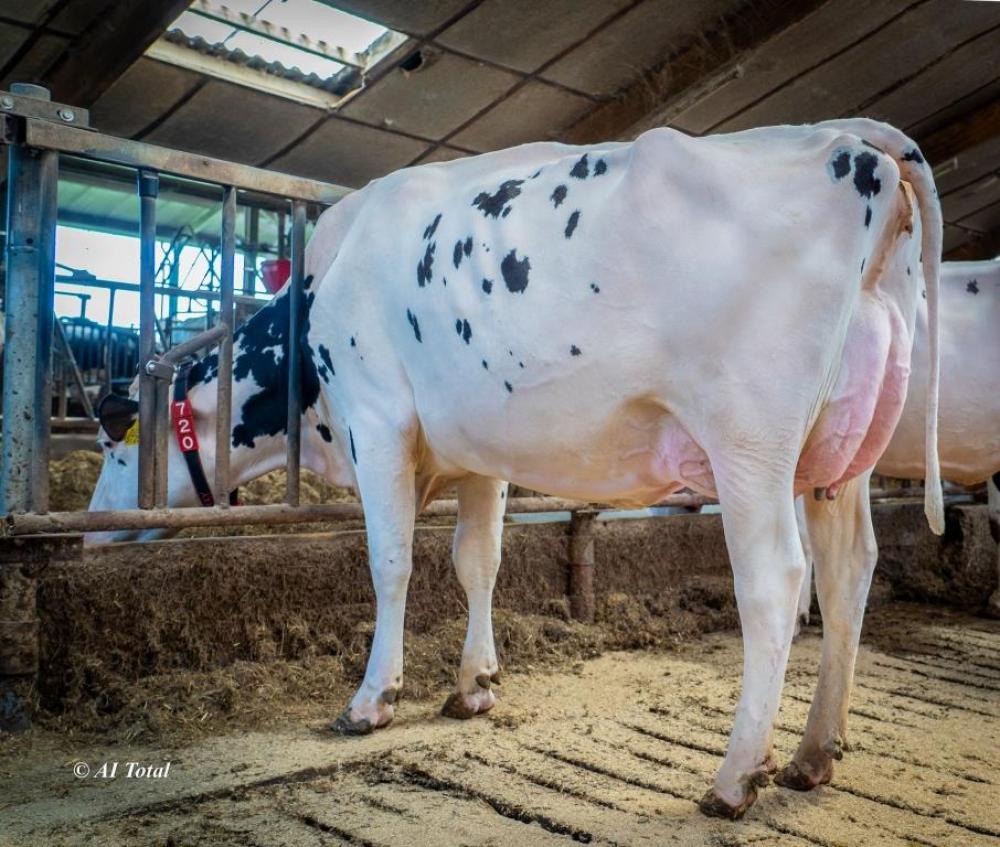 Außerdem wurden fünf Arrow-Töchter auf zwei Betrieben in der ersten und zweiten Laktation gezeigt. Vor allem die drei präsentierten Färsen auf dem Betrieb van Deelen, von denen zwei mit der maximalen Bewertung von 89 im Euter ausgezeichnet wurden, wussten zu glänzen. Sie zeichneten sich durch hohe Inhaltstoffe gepaart mit einer guten Persistenz aus. Arrow-Töchter sind sehr harmonisch gebaut und verfügen für ihre Körpergröße über eine ideale Vorhandstärke und Beckenbreite. Arrow sollte mit seinem korrekten Vererbungsprofil und seiner exzellenten Eutervererbung auf keiner Besamungskarte fehlen und eignet sich optimal für einen breiten Einsatz. Lediglich Roboterbetriebe sollte bei der Anpaarung Tiere mit tendenziell längeren Strichen auswählen.